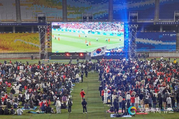 보훈복지뉴스 유서진 기자 | 경기도와 붉은악마 경기지부가 3일 0시 수원월드컵경기장 스포츠센터에서 2022 카타르 월드컵 H조 한국-포르투갈전 실내 시민응원전을 진행한다.