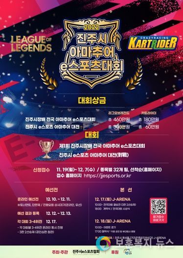 보훈복지뉴스 유서진 기자 | 진주시e스포츠협회가 주최하고, 진주시와 경상국립대학교가 후원하는 ‘2022 진주 아마추어 e스포츠대회’가 오는 17일과 18일 진주중앙지하도상가 e스포츠 커뮤니티센터 J-ARENA에서 열린다.
