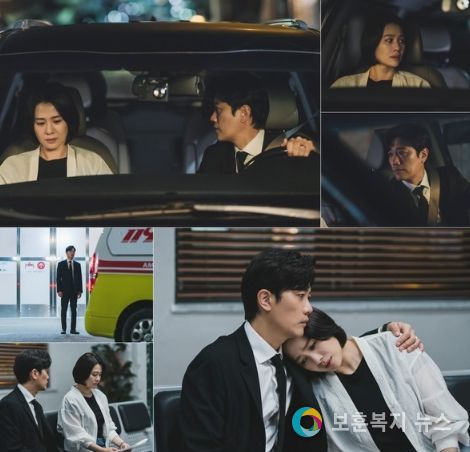 또 다른 사진에는 한밤중 응급실을 찾은 두 사람의 모습이 포착됐다. 앰뷸런스가 떠나간 자리에 우두커니 선 남중도와 병원 일각에서 의문의 종이를 바라보고 있는 김혜주의 복잡한 표정이 궁금증을 더한다.