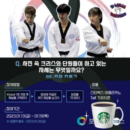 영상 공개와 함께 퀴즈이벤트도 진행한다. 참여 방법은 국기원 유튜브 공식 채널을 통해 1화 시청 후 출제되는 퀴즈의 정답을 1월19일까지 댓글로 남기면 된다.