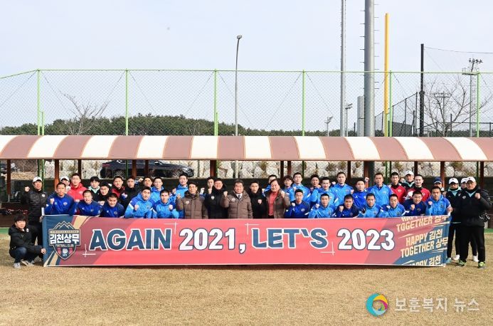김천상무프로축구단 김충섭 구단주가 2일 부산 기장 월드컵빌리지에 방문해 프로 선수단 격려를 진행했다. 구단주를 비롯해 김천상무 배낙호 대표이사, 최한동 후원회장이 함께 방문해 선수단에 대한 응원을 보냈다.
