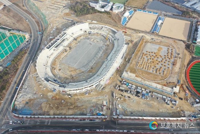 목포종합경기장은 현 공정률 81%로 전국체전 개·폐회식과 육상 경기가 열릴 예정으로 총 공사비 1,148억원(국비 200, 도비 330, 시비 618)을 투입해 지상 3층, 연면적 26,468㎡, 관람석 16,468석 규모로 올해 6월까지 주요공사가 마무리된다.