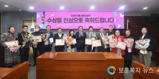 보훈복지뉴스 유서진 기자 | 오산시는 17일 지역사회를 위해 봉사하고 헌신한 유공자에게 감사한 마음을 전달하는 시민시상식을 시청 상황실에서 개최했다고 밝혔다.