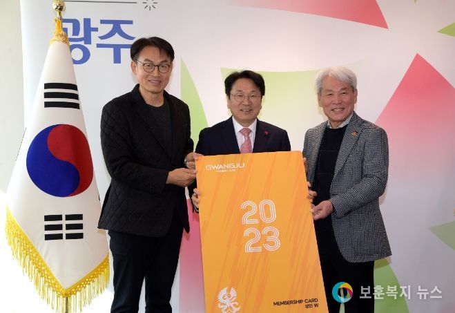 강기정 시장은 22일 시청에서 노동일 대표이사 등이 참석한 가운데 ‘광주FC 2023 시즌 멤버십 카드’를 구입, 제1호 주인공이 됐다.