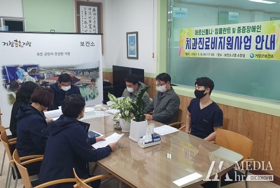 미디어아워 김성연 기자 | 거창군은 지난 8일 거창군치과의사회 회장과 총무를 보건소로 초청해 2023 치과진료비 지원사업 설명회를 개최했다.