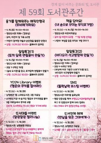 김경미 영도도서관장은 “도서관주간을 맞이해 준비한 이번 행사로 많은 시민들이 일상 속 문화공간인 도서관에서 봄 같이 따뜻하고 뜻깊은 시간을 보내길 기대한다.”고 밝혔다.