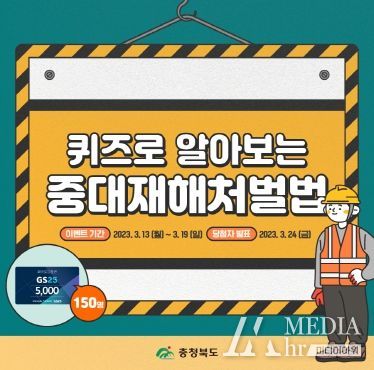 미디어아워 김성연 기자 | 충북도는 중대재해처벌법 시행 2년차 중대재해 예방의 중요성을 일깨우고, 국민안전의 날(4월 16일)을 맞아 안전문화 조성을 위해 도민을 대상으로‘SNS 초성 퀴즈이벤트’를 3월 13일부터 19일까지 실시한다.