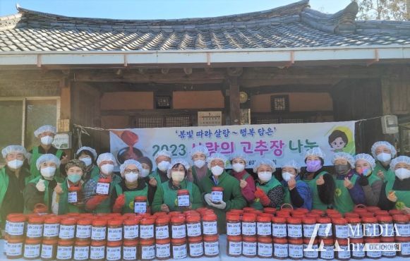 미디어아워 김성연 기자 | 합천군 새마을부녀회는 지난 13일부터 14일까지 가회면 장대마을에서 새마을부녀회장을 비롯한 회원 25여 명이 참석한 가운데 사랑의 고추장 나누기 행사를 진행했다.