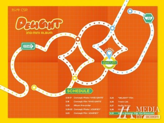 스케줄러에 따르면 첫사랑은 15일 'VIVID WHITE' 버전의 첫 번째 콘셉트 포토 공개를 시작으로, 'JOURNEY' 버전 콘셉트 포토 및 필름, 'DELIGHT' 필름, 트랙리스트, 뮤직비디오 티저 등을 순차적으로 오픈한다. 29일에는 앨범 발매 및 팬 쇼케이스를 개최하며 본격적인 활동에 나선다.