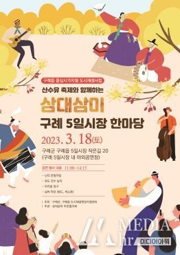 미디어아워 김성연 기자 | 전남 구례군은 군 대표 축제인 ‘산수유꽃 축제’와 더불어 구례 5일 시장 안에서 ‘산수유 축제와 함께하는 삼대삼미 구례 5일 시장 한마당’행사를 3월 18일 11시 5일시장 야외공연장에서 개최한다고 밝혔다.