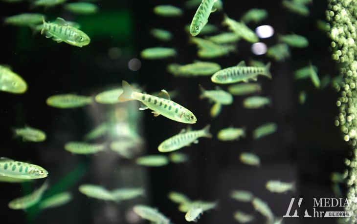 내달 30일까지 이어지는 이번 무료 전시전에는 산천어와 연어, 무지개 송어, 황금송어 등 냉수성 어린 고기 약 2,000여마리가 선을 보인다.