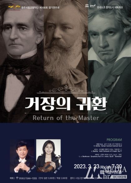 원주시 교향악단 관계자는 “위대한 거장들의 작품을 통해 시민들이 음악이 주는 힘과 웅장함을 느끼는 시간을 가졌으면 좋겠다.”라고 전했다.