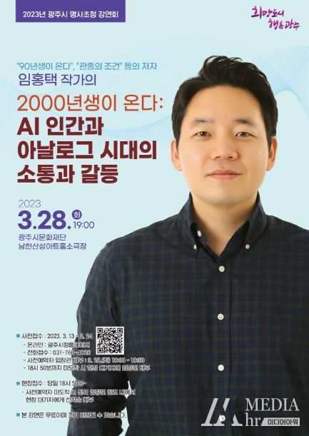 이번 강연은 베스트셀러 ‘90년생이 온다.’의 저자 임홍택 작가가 ‘2000년생이 온다.ːAI인간과 아날로그 시대의 소통과 갈등’이라는 주제로 이야기할 예정이다.