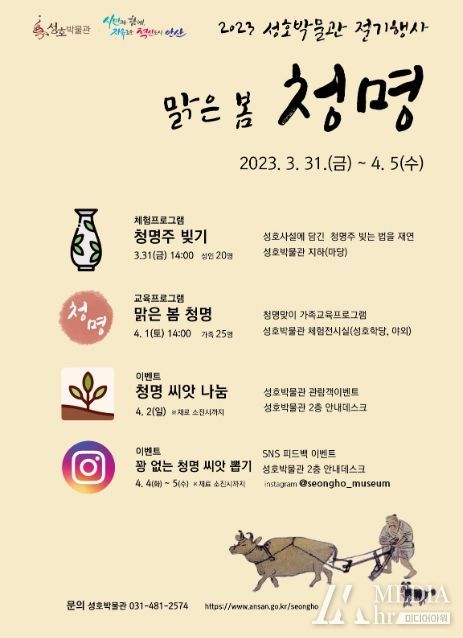 미디어아워 진금하 기자 | 안산시 성호박물관은 봄의 절기 ‘청명(淸明)’을 맞아 다양한 봄철 문화행사를 운영한다고 21일 밝혔다.