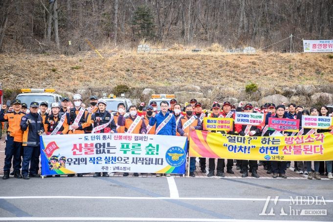 미디어아워 진금하 기자 | 남해군은 지난 18일 금산 등산로 입구에서 산불 예방과 경각심 고취를 위해 남해소방서, 의용소방대, 한려해상 국립공원, 산불진화대 등 유관기관 관계자 60여명이 참석한 가운데 2023년 도 단위 산불예방 캠페인을 실시했다.