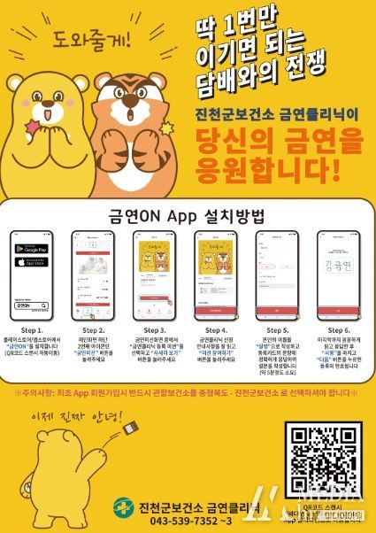 미디어아워 진금하 기자 | 진천군보건소는 QR코드를 이용한 모바일 금연클리닉 ‘금연ON’을 운영하고 있다고 22일 밝혔다.