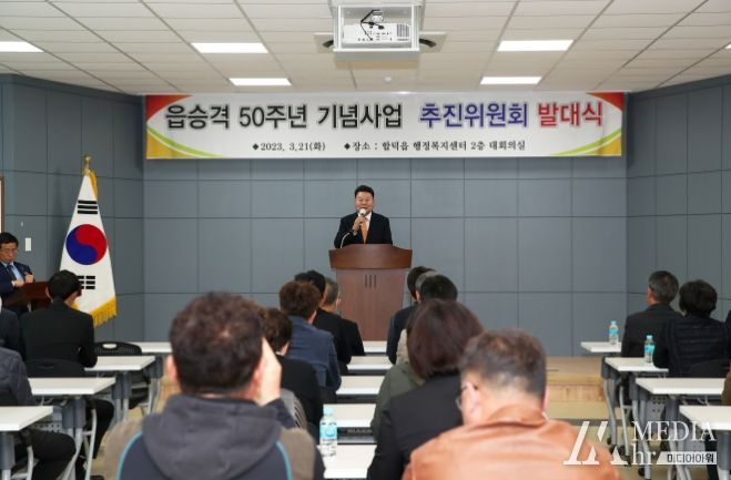 미디어아워 진금하 기자 | 올해 읍 승격 50주년을 맞은 합덕읍이 다채로운 기념사업을 발굴 및 추진하기 위해 21일 합덕읍 행정복지센터에서 추진위원회 발대식과 현판식을 개최했다.