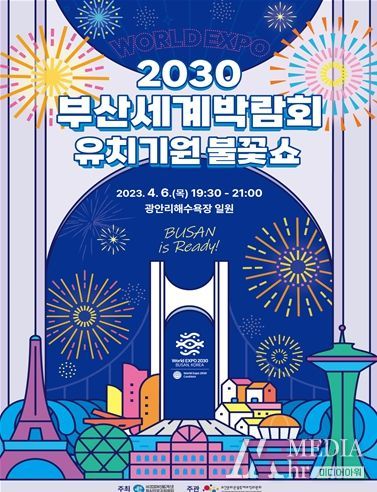 미디어아워 박미영 기자 | 부산시는 2030 세계박람회 부산 유치의 뜨거운 열망과 의지를 표현한 ‘2030부산세계박람회 유치기원 불꽃쇼’를 오는 4월 6일 오후 7시 30분부터 오후 9시까지 광안리해수욕장에서 개최한다고 밝혔다.
