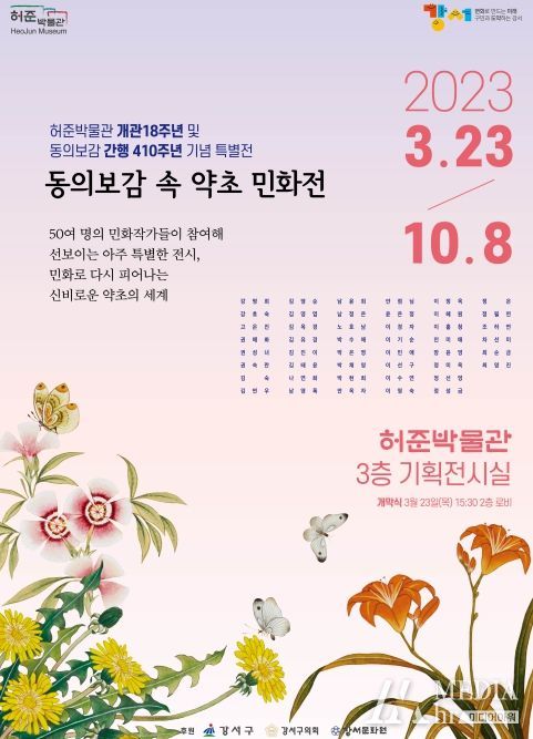 미디어아워 진금하 기자 | 서울 강서구는 '동의보감 속 약초 민화전'을 23일부터 오는 10월 8일까지 허준박물관(관장 김쾌정) 3층 기획전시실에서 개최한다고 밝혔다.