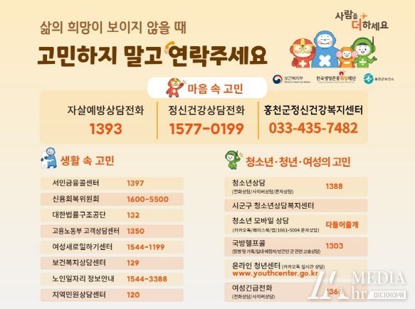 미디어아워 박미영 기자 | 홍천군이 자살 고위험 시기인 봄을 맞아 3월부터 6월까지 자살 고 위험군과 지역주민을 대상으로 자살예방 집중홍보를 실시한다.