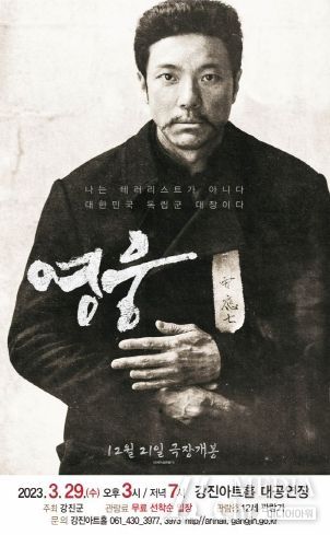 미디어아워 김성연 기자 | 강진군은 안중근 의사의 마지막 1년을 다룬 영화 ‘영웅’을 오는 3월 29일 오후 3시, 7시 강진아트홀 대공연장에서 무료로 상영한다고 밝혔다.