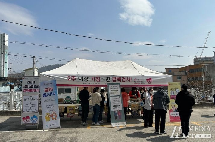 미디어아워 진금하 기자 | 포천시보건소는 지난 22일 보건소 정문에서 제13회 결핵 예방의 날을 맞이해 ‘기침이 2주 이상 지속되면 결핵 검사’ 슬로건으로 결핵 퇴치를 위한 캠페인을 실시했다.