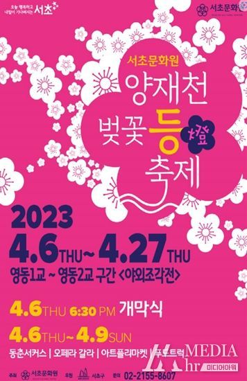구는 다음 달 6일부터 27일까지 서초문화원과 야간 불빛 속 벚꽃의 운치와 문화공연을 함께 즐기는 '양재천 벚꽃 등(燈) 축제'를 연다. 새달 8일에는 방배본동과 방배2동의 벚꽃 명소에서 문화 행사도 열린다.