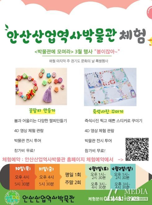 미디어아워 진금하 기자 | 안산시 산업역사박물관은 문화의 날(매월 마지막주 수요일 또는 그 주간)을 맞아 어린이 대상 체험행사 ‘박물관에 모여라, 봄이잖아’를 개최한다고 27일 밝혔다.