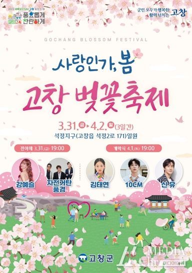 미디어아워 이호민 기자 | 사계절 화사한 꽃과 싱그러운 자연이 아름다운 고창군에서 ‘제1회 벚꽃축제’가 열린다.