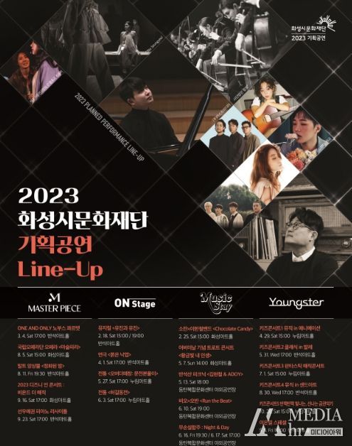미디어아워 진금하 기자 | 올해 창립 15주년을 맞이한 (재)화성시문화재단이 2023년 기획공연을 선보인다. 최신 경향 작품을 소개하는 온 스테이지(On stage), 클래식 걸작 시리즈 마스터피스(Masterpiece), 어린이・청소년 맞춤 프로그램 영스터(Youngster), 대중음악과 피크닉을 결합한 뮤직 스테이(Music Stay)로 주요 시리즈를 구성해 관객의 선택권을 넓히고 남녀노소 누구나 공연예술을 즐길 수 있도록 마련했다.