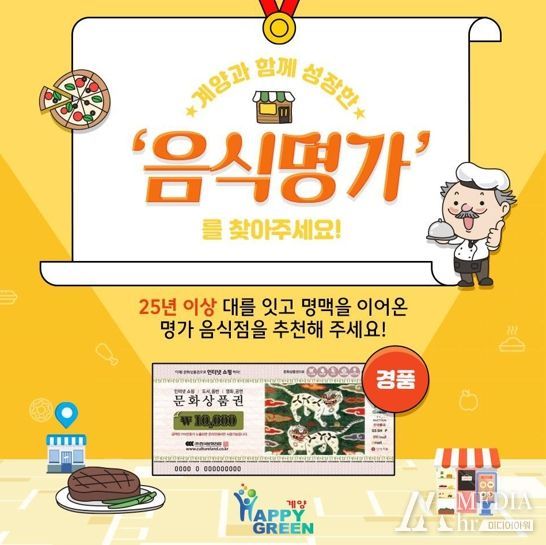 미디어아워 이호민 기자 | 인천광역시 계양구는 27일부터 ‘계양과 함께 성장한 음식명가’ 선정을 위한 대상 음식점 추천 이벤트를 실시한다고 밝혔다.