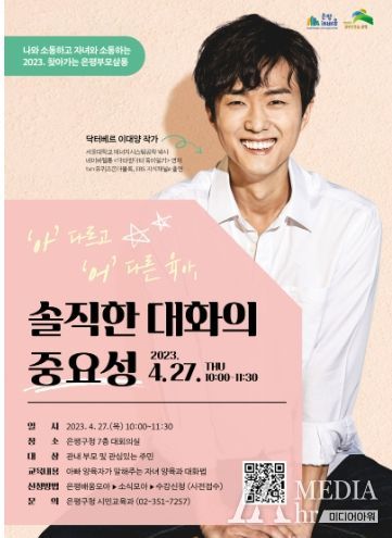 미디어아워 진금하 기자 | 서울 은평구는 오는 4월 27일부터 ‘2023 찾아가는 은평 부모 살롱’을 운영한다고 밝혔다.
