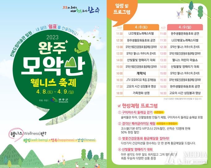 미디어아워 이호민 기자 | 모악산을 품고 있는 완주군이 웰니스 축제를 개최해 일상에 쉼표를 선물한다.