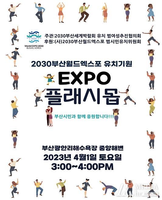 미디어아워 김성연 기자 | 2030부산세계박람회 유치를 기원하는 시민 플래시몹 행사가 4월 1일 오후 3시 광안리해수욕장 중앙해변에서 열린다.