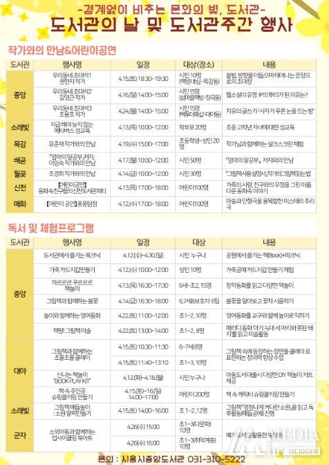 미디어아워 진금하 기자 | 시흥시중앙도서관은 ‘도서관의 날 및 도서관주간’을 맞아 시민들이 함께할 수 있는 작가와의 만남, 문화공연, 독후체험 프로그램 등 다채로운 행사를 준비했다.