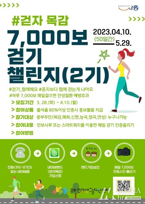 미디어아워 진금하 기자 | 시흥시는 중부권 지역주민의 걷기 생활 실천을 위한 ‘걷자 목감 7,000보 걷기챌린지’ 1기 챌린지를 지난주에 완료하고, 2기 챌린지에 함께할 참여자를 모집한다.