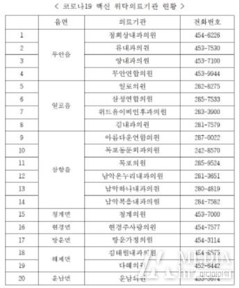 미디어아워 김성연 기자 | 전남 무안군은 2가 백신을 활용한 코로나19 동절기의 추가접종을 4월 8일 자정부터 종료함에 따라 접종 위탁의료기관을 33개소에서 20개소로 축소 운영한다.
