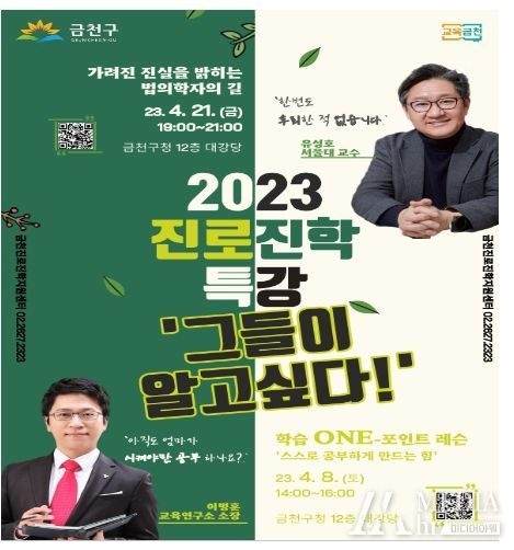 진로진학 특강은 금천진로진학지원센터 홈페이지에서 신청할 수 있다.