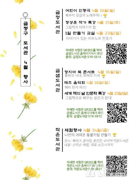 금정구 도서관 관계자는“4월 도서관의 날과 도서관 주간을 맞아 다양한 행사를 통해 가족과 함께 도서관에 방문하여 도서관과 친숙해지는 계기가 되길 바란다”라고 전했다.