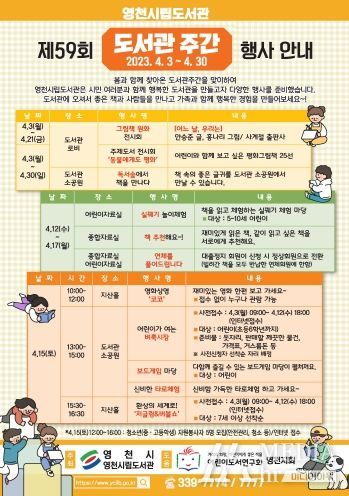 미디어아워 김성연 기자 | 영천시는 제59회 도서관주간을 맞아 4월 한 달간 다양한 독서문화행사를 운영한다.