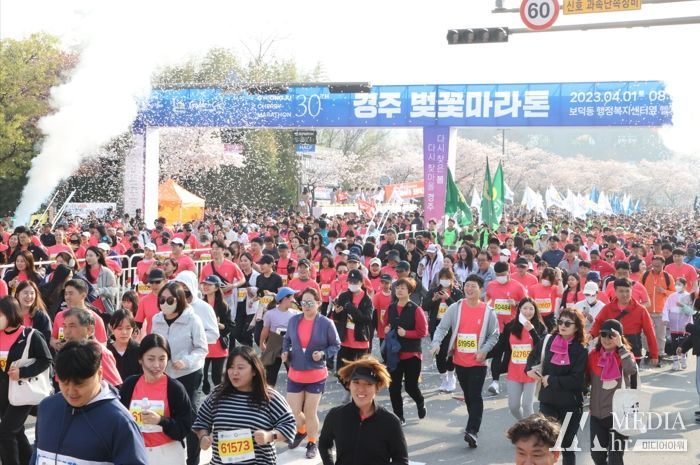 미디어아워 이호민 기자 | 봄 정취가 한껏 무르익어가는 벚꽃 시즌, 전국에서 가장 아름다운 마라톤 코스를 자랑하는 ‘경주벚꽃마라톤대회’가 1일 오전 보문관광단지에서 출발 총성이 울렸다.