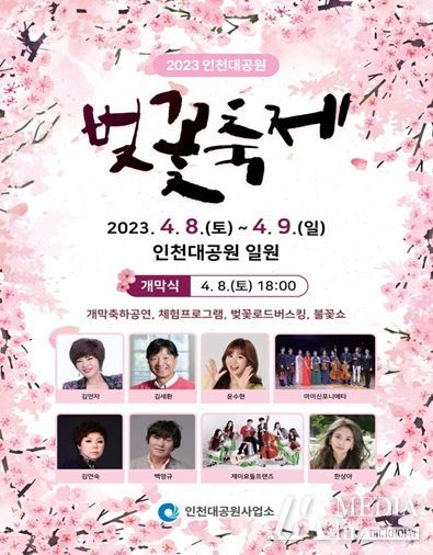 미디어아워 김성연 기자 | 인천광역시는 벚꽃 개화기를 맞이해 4.8일부터 9일까지 이틀간 인천의 대표공원인 인천대공원에서 ‘2023년 인천대공원 벚꽃축제’를 개최한다고 밝혔다.
