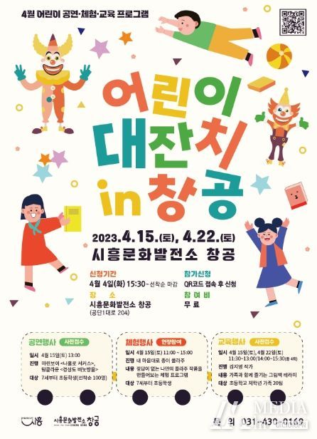 미디어아워 진금하 기자 | 시흥시는 오는 4월 15일과 22일 이틀간 시흥문화발전소 창공에서 ‘어린이 대잔치 in 창공’ 행사를 개최해 어린이 문화욕구를 충족시키며, 어린이들과 가족단위 관람객에게 즐거운 시간을 선사한다.