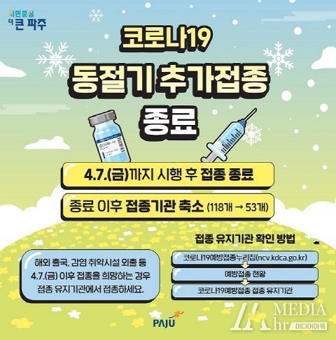 미디어아워 진금하 기자 | 파주시는 오는 7일 코로나19 동절기 추가접종을 종료한다고 밝혔다.