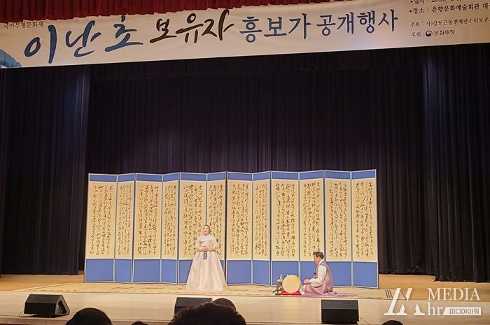 미디어아워 이호민 기자 | 국가 무형문화재 판소리 흥보가 보유자 이난초 명창의 공개행사가 지난 4월 2일 14시 남원시 춘향문화예술회관 대공연장에서 열렸다.