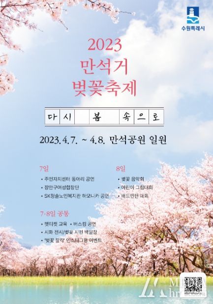미디어아워 진금하 기자 | 수원시를 대표하는 봄꽃 축제 ‘2023 만석거 벚꽃 축제’가 7~8일 이틀간 장안구 만석공원에서 열린다.