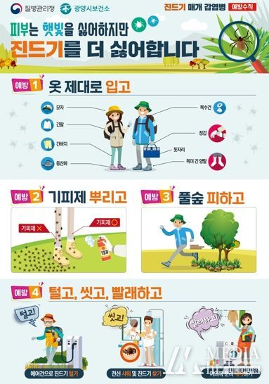 미디어아워 이호민 기자 | 광양시는 본격적인 농번기와 야외활동이 잦아지는 봄철 진드기를 매개로 하는 진드기 매개 감염병을 주의해 달라고 당부했다.