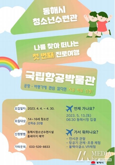 미디어아워 진금하 기자 | 동해시는 관내 청소년들을 대상으로 진로 역량 강화 및 올바른 진로 의식 함양을 위해 “나를 찾아 떠나는 진로여행” 프로그램을 운영한다고 밝혔다.