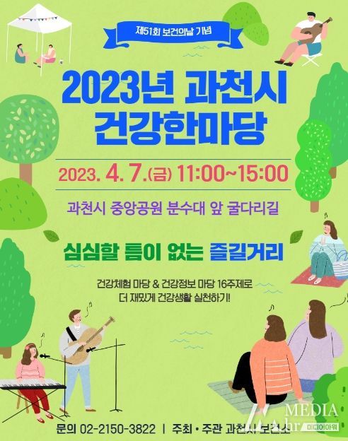미디어아워 진금하 기자 | 과천시 보건소는 ‘제51회 보건의 날’을 맞아 오는 7일 중앙공원(별양동) 굴다리길 일대에서 ‘2023년 과천시 건강한마당’ 행사를 연다고 5일 밝혔다.