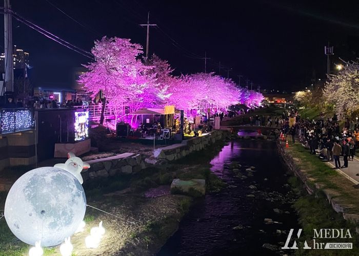 특설무대 인근 벚꽃나무와 육교에는 경관조명과 포토존을 설치해 벚꽃길 야간 산책을 즐기려는 시민들의 만족도를 높였다.